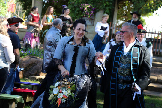 Weddings are held mid-May through early October when the Renaissance Festival is closed, allowing you the luxury of an intimate celebration on our beautiful grounds. You may choose to have your ceremony at any of our 12 outdoor stages or and your wedding reception may be held in The Royal Garden which seats up to 150 people.